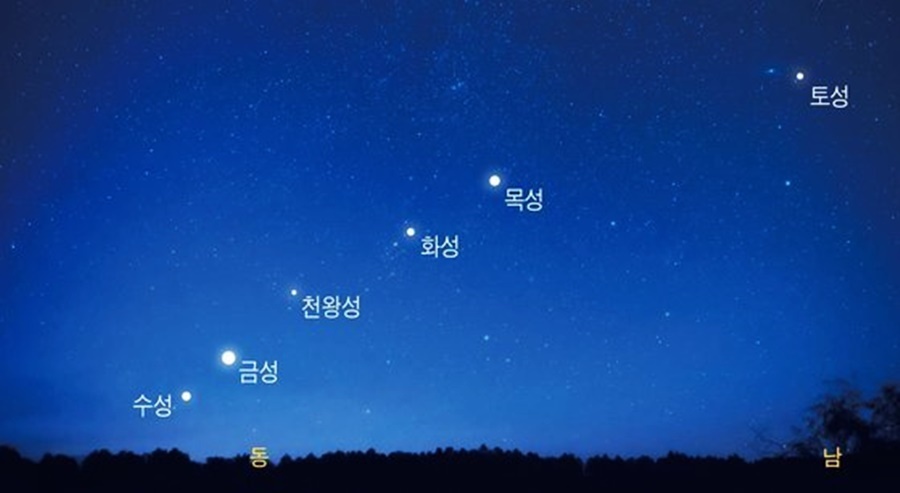 수성, 금성, 화성, 목성, 토성이 일렬종대로 늘어서는
