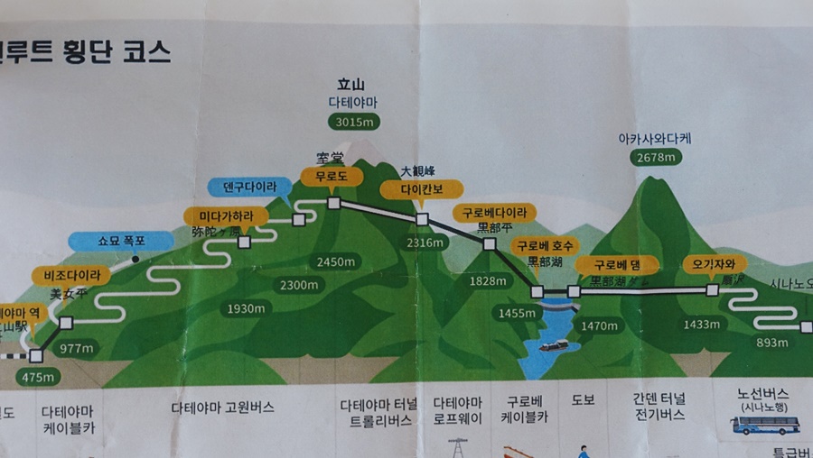 다테야마 Alpine route 1455m의 험한 산악지대에
