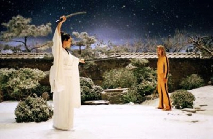 눈발 날리는 녹엽 정(綠葉停)에서의 결투 장면
