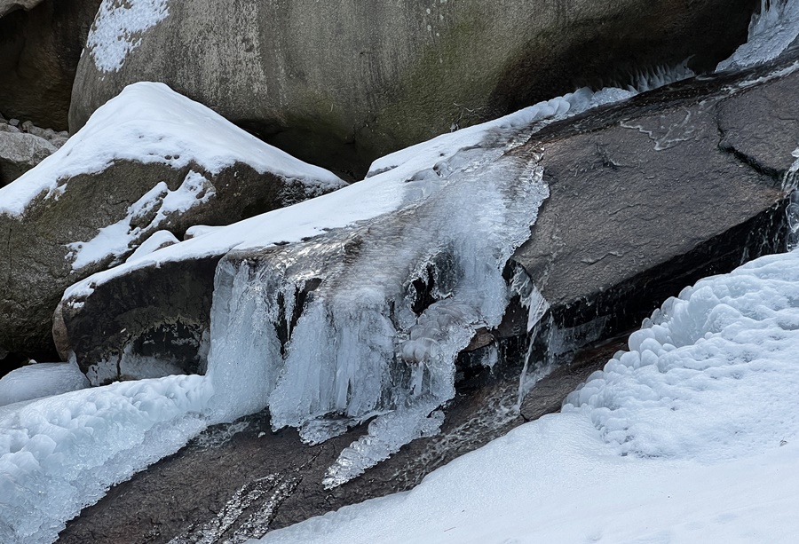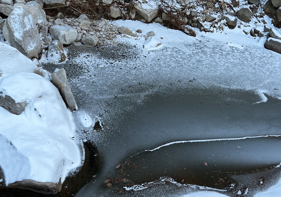 계곡물도 꽁꽁 얼었고요!