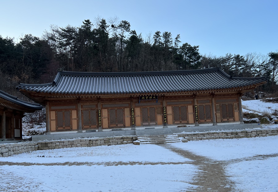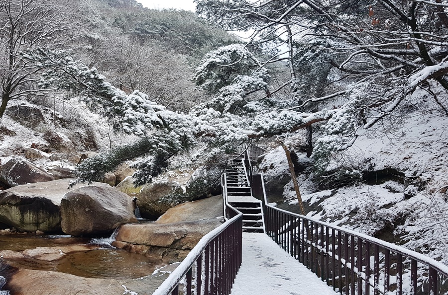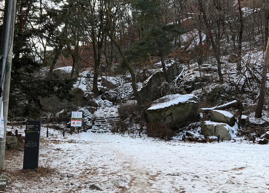 눈 쌓인 북한산 계곡입구는