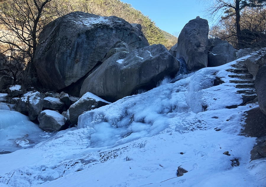 얼음 밑으로 흐르는 계곡물소리도 신선하게 들리고요!