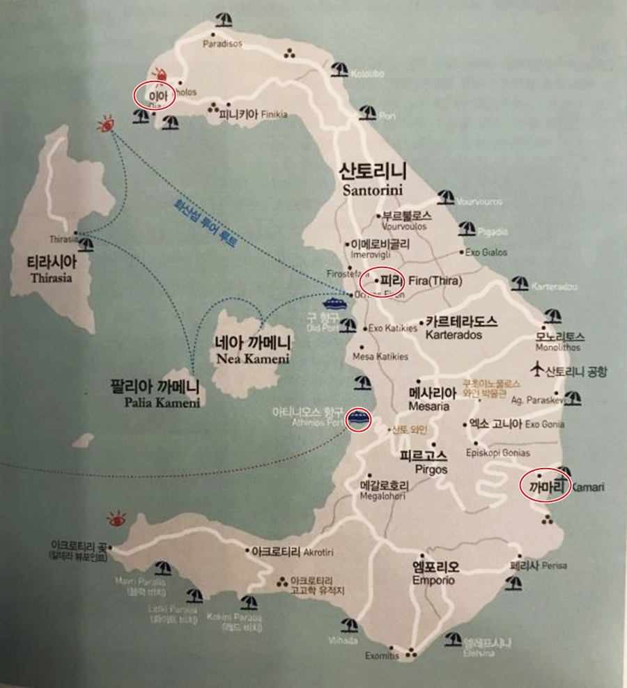 산토리니 관광 안내도에 많이 나오는